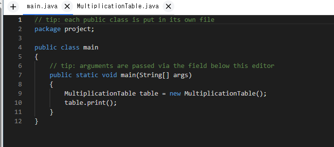- 하지만 MultiplicationTable 클래스가 Main 클래스와 같은 project 패키지(폴더) 안에 있다면, import 문은 아예 필요 없습니다.